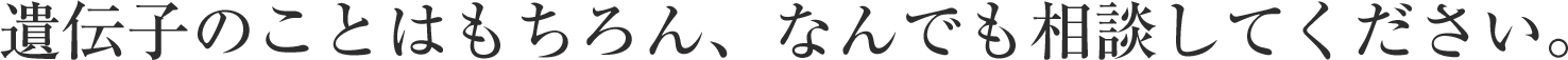 遺伝子のことはもちろん、それ以外でも子育てのこと、夫婦のこと、なんでも相談してください。